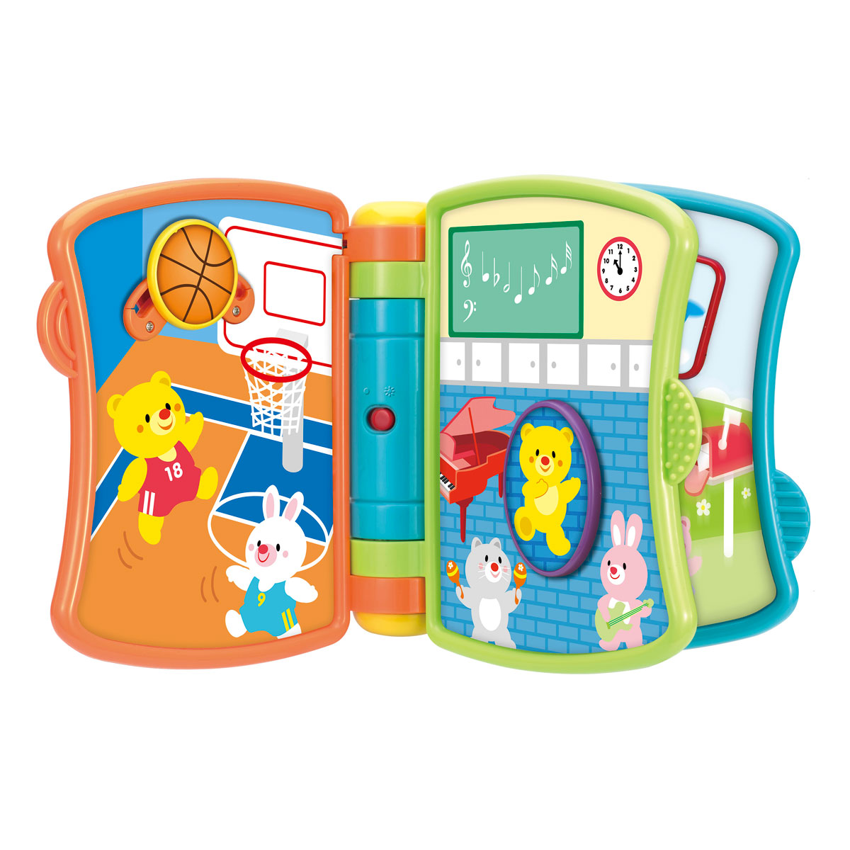 Učte a smějte se společně s vaším dítětem a touto interaktivní knížkou. Knížka v pestrobarevných barvách vydává různé poutavé zvuky a melodie. Má různé funkce podporující rozvoj motorických dovedností.