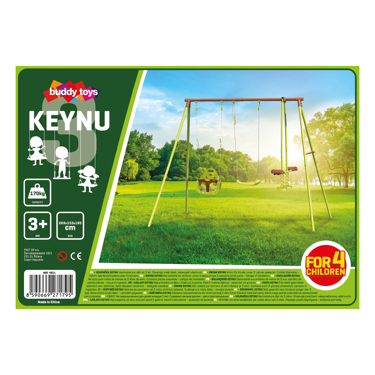 Masivní houpačka s kompletní kovovou konstrukcí je zárukou dlouhodobé životností s minimální údržbou. Nosnost houpačky je až 170 kg. Houpací prvky jsou uchyceny bezpečnostními karabinami, pro jednoduší a rychlejší výměnu.