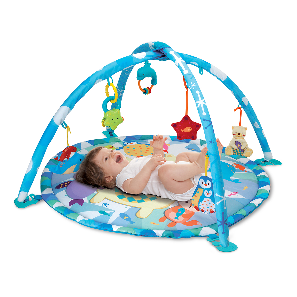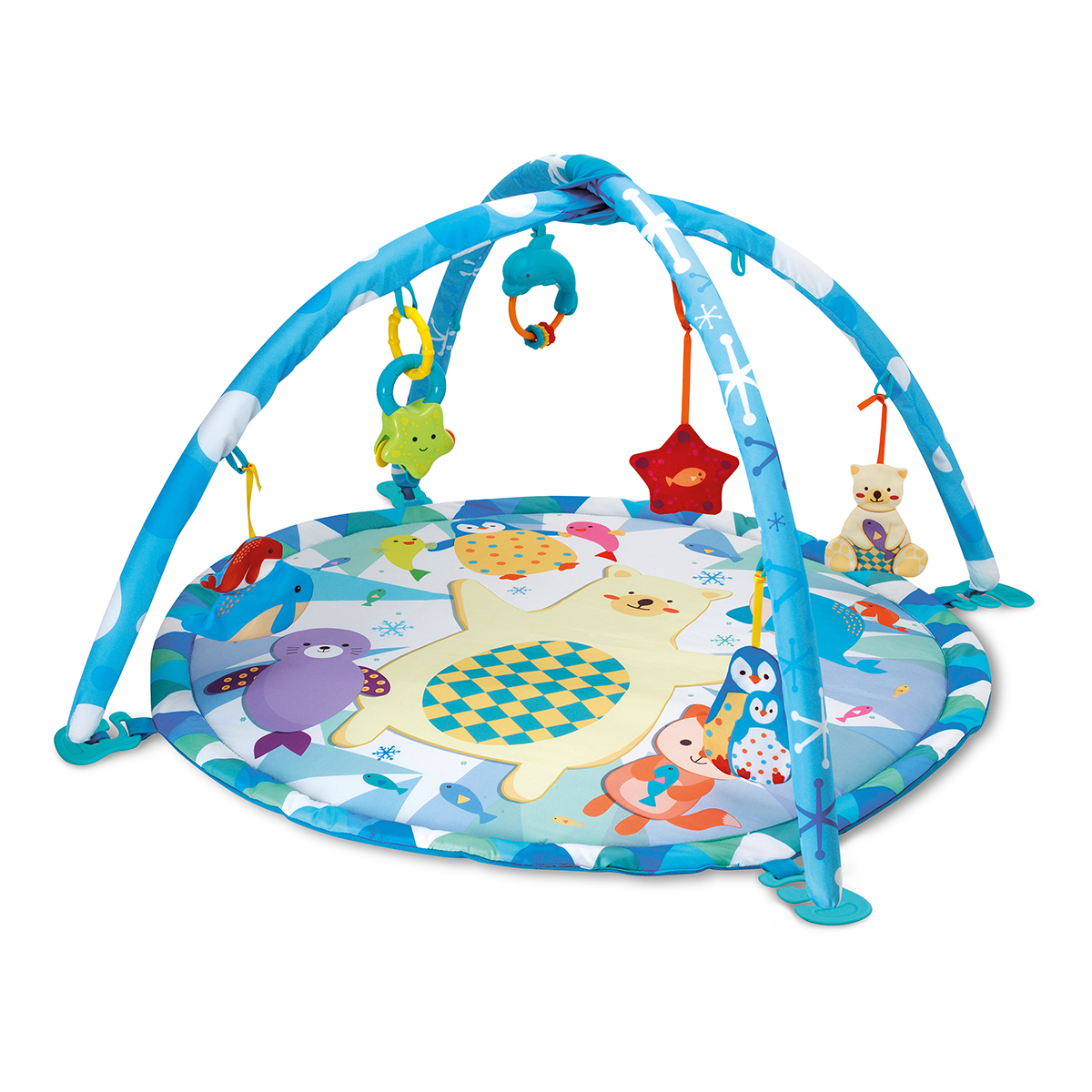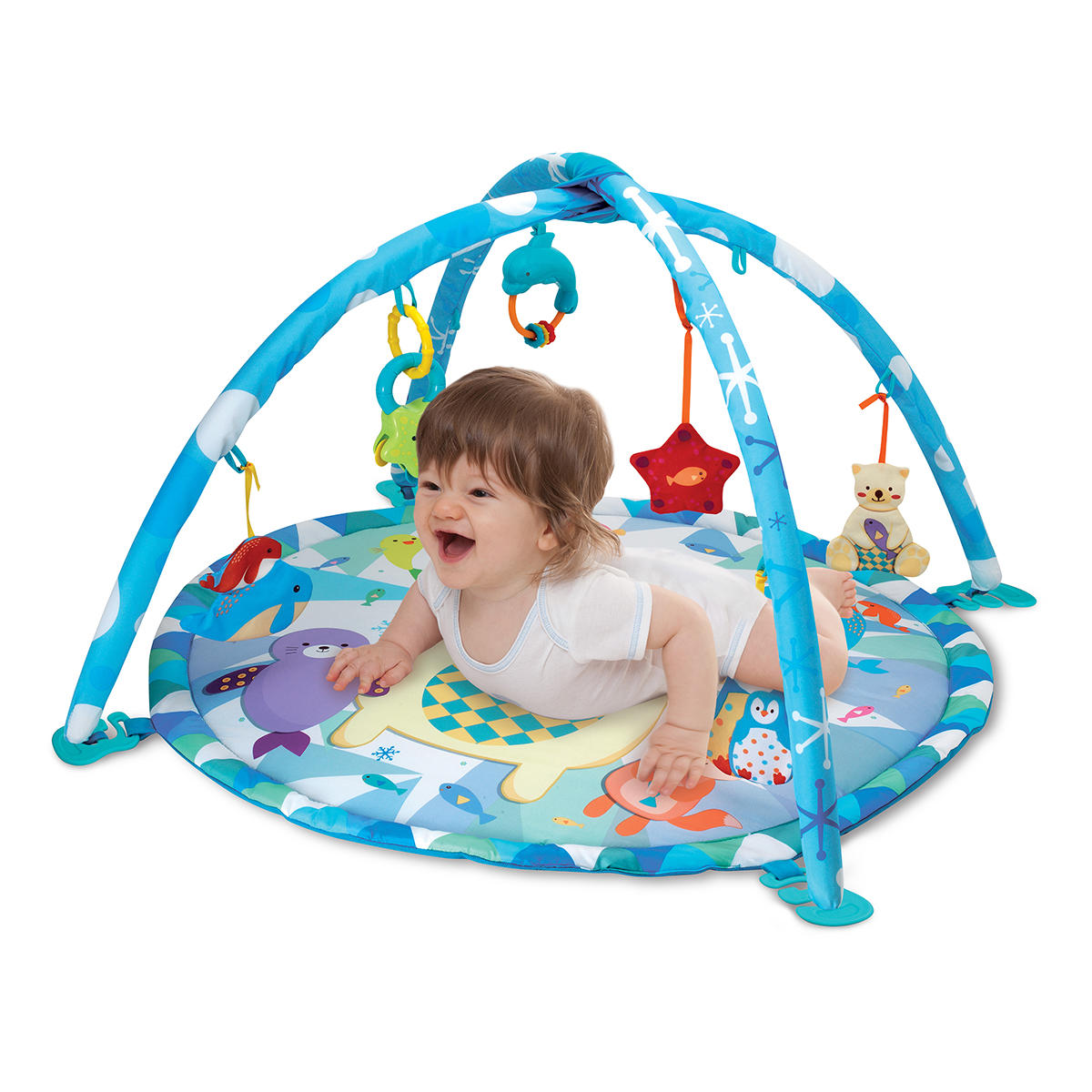 Hrací deka Polar Pals je vlastně podložkou pro hry vleže na zádech, na břichu i vsedě. Díky klenutým prvkům vytváří prostor, který dítě dokáže obsáhnout očima a jeho pozornost se tak netříští. Neustále má tak na očích i v dosahu rukou snímatelné a zcela bezpečné závěsné hračky.
