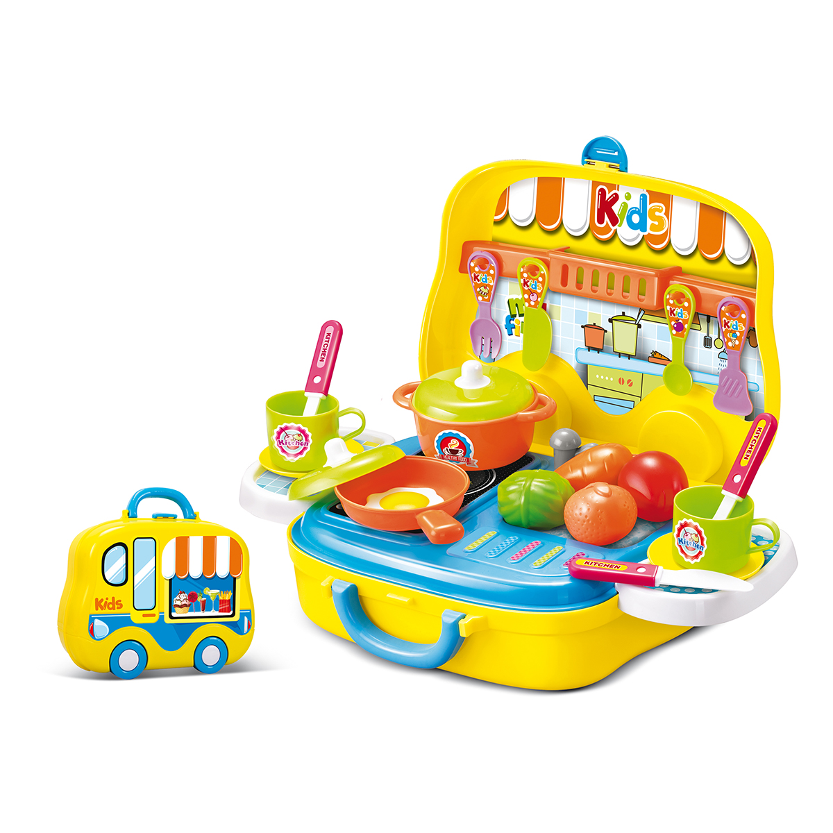 Super přenosná kuchyňka v kufříku. Ideální na cesty malého pokojíku nebo plastového domečku. V kufříku naleznete 25 kusů příslušenství, bez kterého se neobejde žádný malý kuchař.