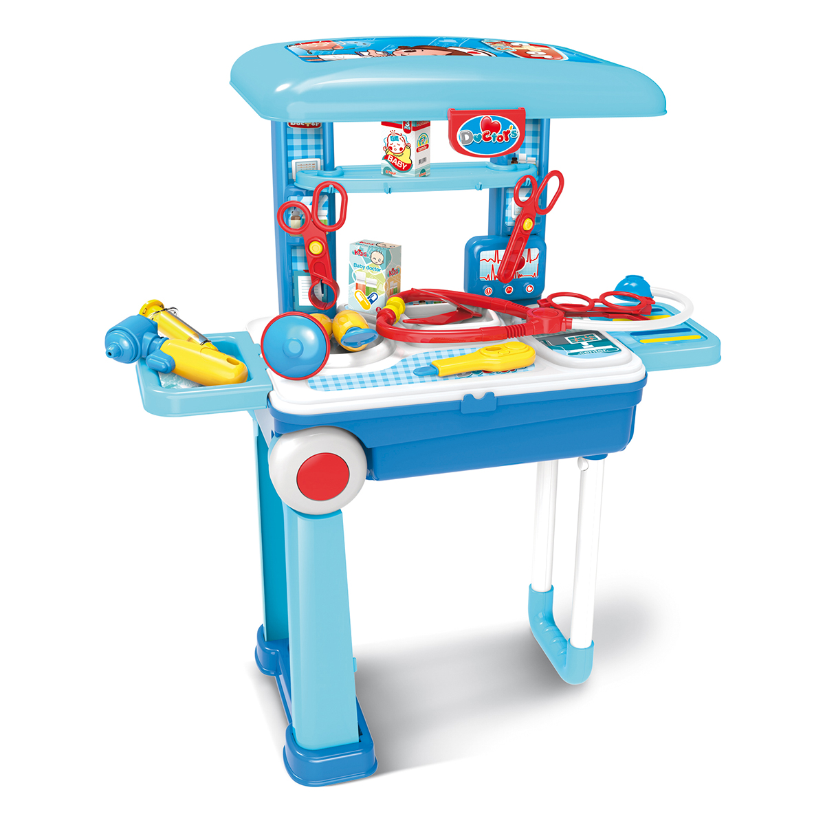 Ideální hračkou, která podporuje dětskou „profesní“ hravost je Doktor v kufříku opatřeném stojanem i kolečky. Rozmanité příslušenství čítá 13 kusů. Všechno je vyrobené z kvalitního a odolného plastu. Lékařská ordinace o rozměrech 63 x 53 x 25 cm je snadno sestavitelná, lze ji jednoduše rozložit a uklidit do kufříku, je tedy velmi vhodná i při cestách, dovolených a výletech.