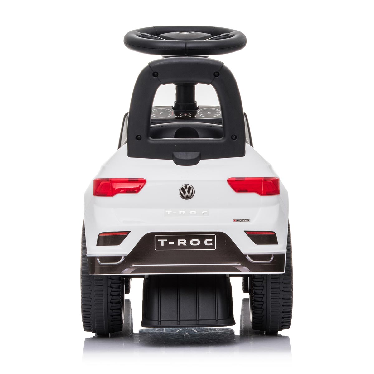 Chcete, aby mělo vaše dítě jedinečné odrážedlo, za kterým se budou ostatní děti a rodiče otáčet? Pak mu pořiďte odráželo Volkswagen T-ROC. Jedná se o zmenšenou kopii opravdového sportovního auta. Dítě ocení dostatečně dostatečné velký úložný prostor pod sedátkem, kam si může dát svoje oblíbené hračky i se mu jistě zalíbí zvuky a melodie na volantu. Rodiče určitě ocení sklopnou zádovou opěrku pro větší bezpečnost. S tímto odrážedlem Volkswagen T-ROC bude každá jízda jedinečná.